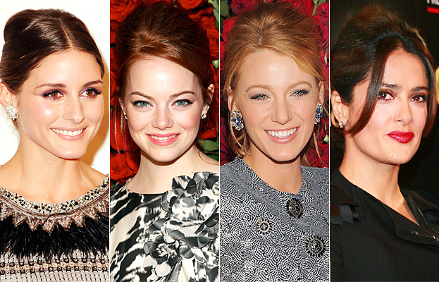 Take the looks of Olivia Palermo, Emma Stone, Blake Lively and Salma Hayek, all have exaggerated, bumped-up volume allowing their flawless complexions and detailed dress to stand out.